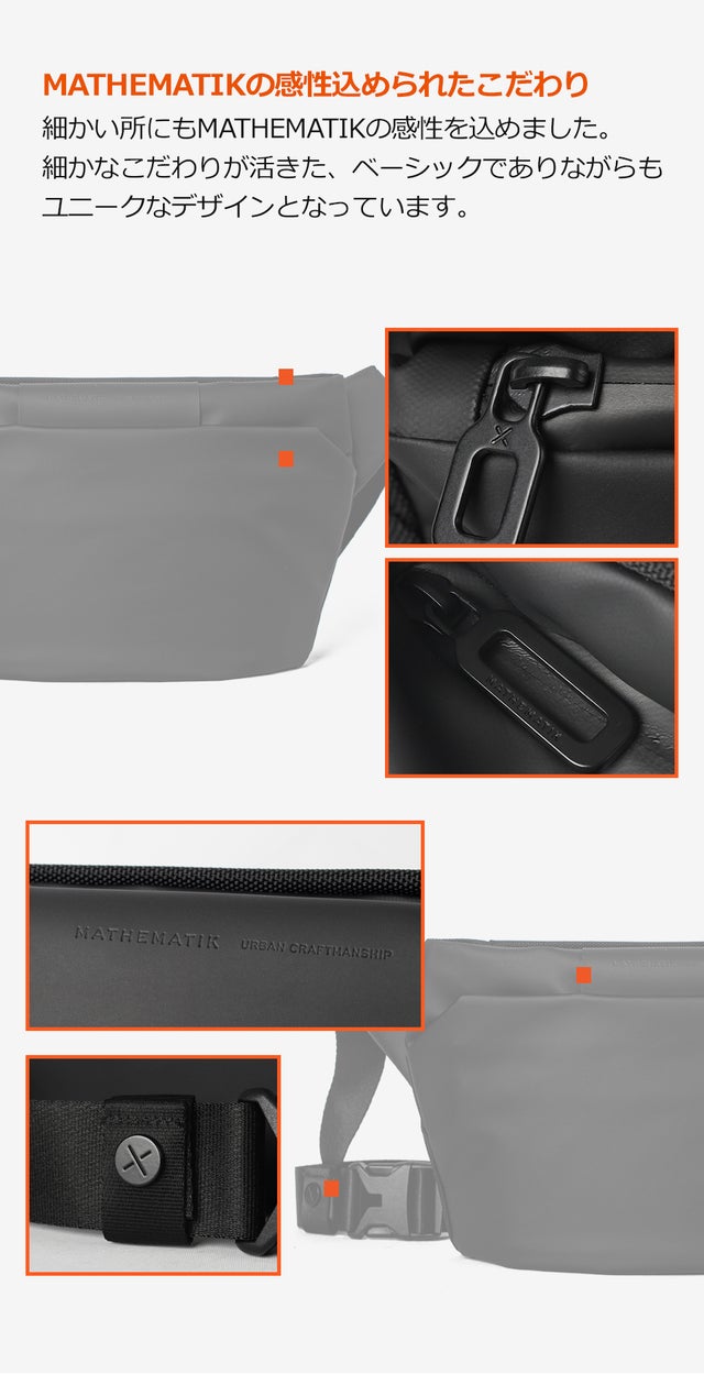 - 拡張性+生活防水+RFID SAFEポケット+軽量+丈夫な素材=マスマティックのこだわりです!