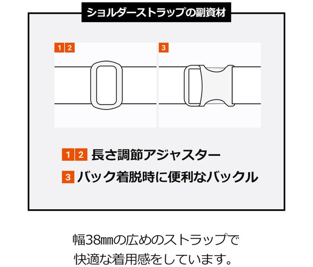 改善前の「TAO M18」はストラップ調整用の副資材が1つしかなかったため、ストラップを短くする際にある程度の限界がありましたが、アップグレード版の「TAO M18」は逆側にもストラップ調整用の副資材が追加されたため、ストラップの長さをより自由に短くすることができるようになりました!ストラップの長さ調整も自由にできるので、様々なスタイリングに合わせて演出が可能です!