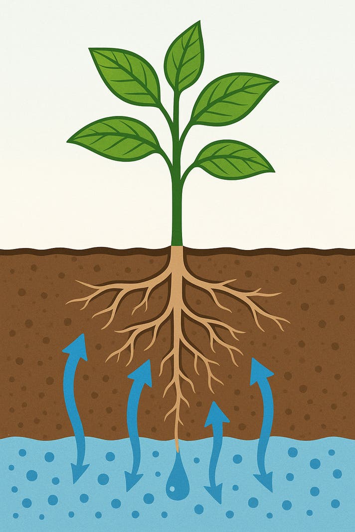 通常の「上から水やり」では、表面だけ水が浸みて根の浅い部分しか濡れず、深い根まで水が届きにくいことがありますが、TapWire は土の下の根っこの近くに水を与えることができます。