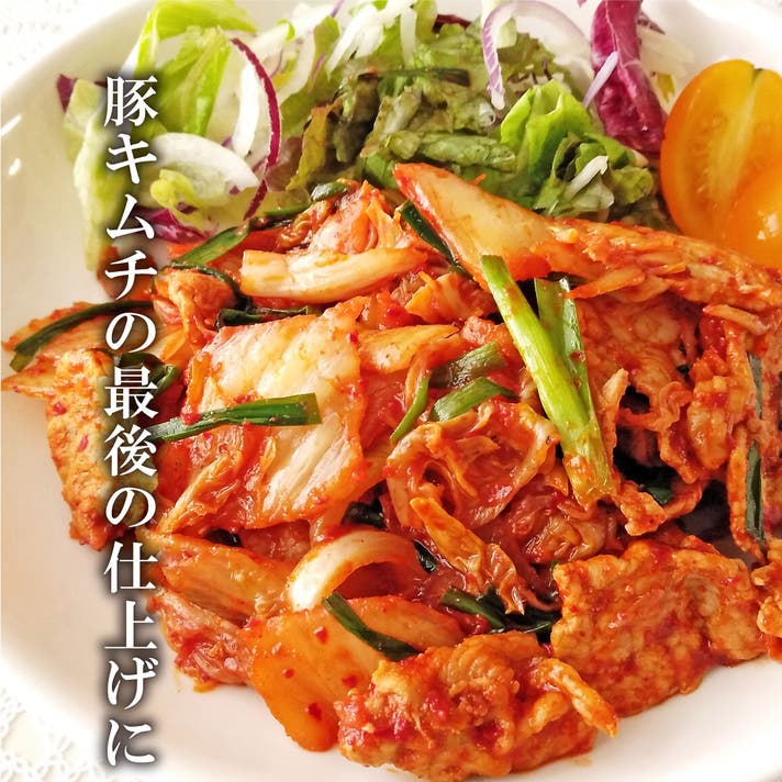 豚とキムチを炒めて最後に「たれパウダー」整える、、、はぁ旨い。