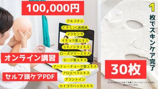 100,000円→他力本願マスク碧30枚、セルフ顔ケアのポイントを書いているPDF、オンラインでの顔のセルフケア講習