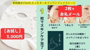 100,000円→他力本願マスク碧30枚、セルフ顔ケアのポイントを書いているPDF、オンラインでの顔のセルフケア講習