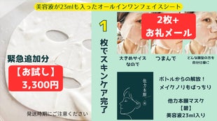 他力本願マスク碧30枚と顔ケアのコツを書いたPDFと
