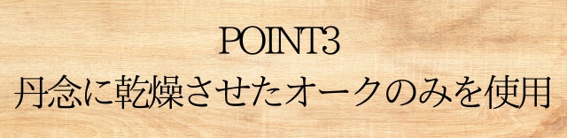 なんと1年以上の十分な乾燥を施しました。これにより上質な熟成用の木材へと生まれ変わったオークのみを使用しています。