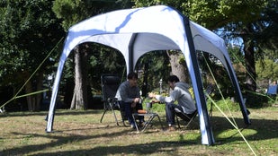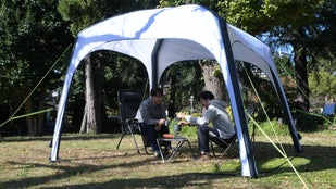 広げて空気を入れるだけで、たったの2分で完成する骨組みがいらないタープです。