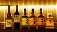 ウイスキーでは、山﨑・白州・響とレアで高価なお酒が並んでいる。