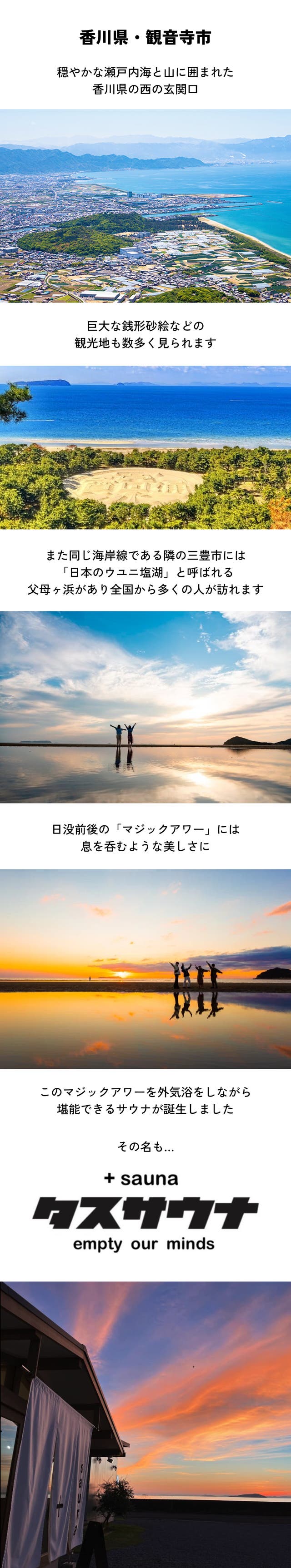 「Makuake(マクアケ)」は、実行者の想いを応援購入によって実現するアタラシイものやサービスのプラットフォームです。このページは、 地域活性化カテゴリの 「瀬戸内海を一望できる香川県の超本格サウナがMakuake限定プラン販売!」プロジェクト詳細ページです。
