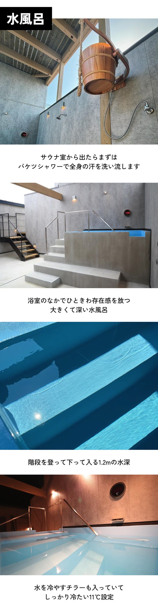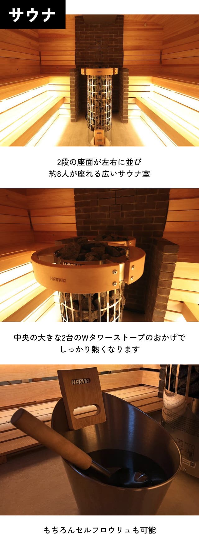 - Wストーブサウナ、1.2mの水深の水風呂、絶景外気浴とサウナ好き垂涎のスペック!