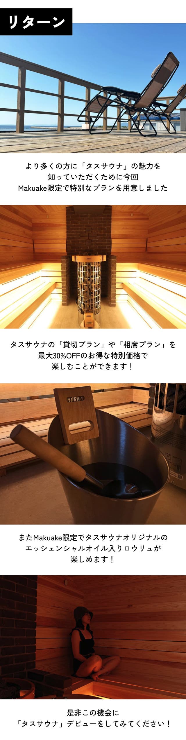 - オリジナルエッセンシャルオイル入りのロウリュが楽しめるお得なプランをMakuake限定で販売!