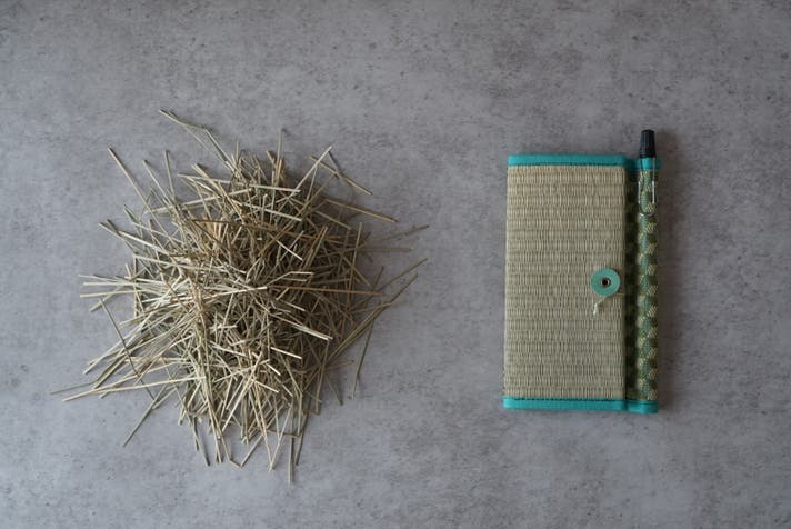 畳をつくる工程で本来、廃棄されてしまう藺草からつくることができたメモとノートです。