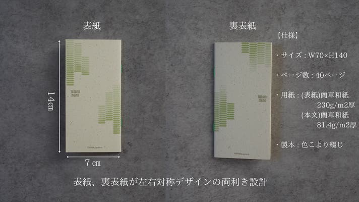 従来の針金を使わず「色こより綴じ」を採用することでSDGsにも配慮し、天然素材を活かしたプロダクトに仕上がりました。