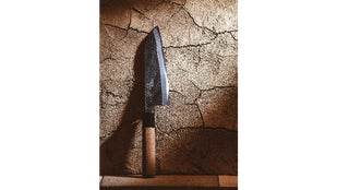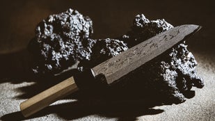 通常市場には出回らない、たたら製鉄でできた鉄で作った包丁です。ブレード部分には極軟鉄、エッジ部分に玉鋼を使用しています。
