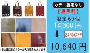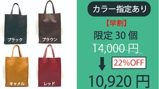 完成したトートバッグ1個 ■カラー:カラー指定あり ■持ち手の長さ:ショート、ロングからお選びください。■カラー:ブラック、ブラウン、キャメル、レッドからカラーをお選びください。 ■プロジェクト終了後、お申し込み順に発送致します。 2023年12月末発送予定 ※発送はネコポスとなります。 ※デザイン・仕様・内容品は変更になる可能性もございます。ご了承ください。 ※ご注文状況、使用部材の供給状況、製作工程上の都合等により出荷時期が遅れる場合がありますので予めご了承くださいませ。