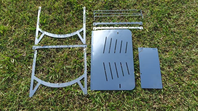 - 直火のような感覚で焚き火ができる、組み立て式の多人数向け焚き火台