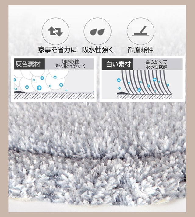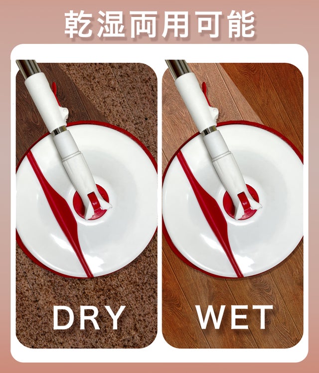 【水拭き・乾拭き、手洗い不要・ラクラク掃除】マイクロファイバーパットで、水拭きでもから乾拭きでも、しっかり細かいホコリや汚れをキャッチします。吸水性、耐久性に非常に優れ、床面を傷つけずお掃除出来る。水洗い出来るし取り付けも簡単、繰り返し使用可能のモップ付属、お財布にも地球にもやさしい。