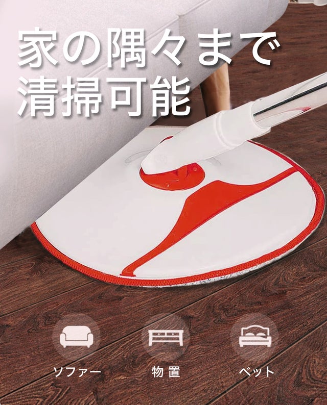 360度自由回転式ヘッド、わずか4.5CMの超薄タイプ、狭いスペースも、家具の下やフローリングの端などもしっかりと拭ける。隅々まで綺麗に、角や階段などにもピッタリ。狭い空間のお掃除にも大変活用、とても便利です。