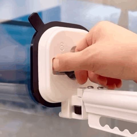 2面の頑丈な吸盤で窓にピタッとひっつけ、密着させる洗濯物干し