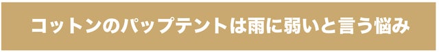 □ ポリエステル素材のテントに比べてコットン素材のテントは雨に弱いとう弱点を抱えています。テントのハトメ部分から雨が侵入することも・・・