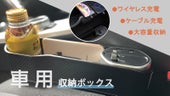 スマホ、財布、飲み物などの収納に大変便利です。その上、シガーソケットから電源を確保し、内蔵ケーブルもしくはワイヤレス充電パネルでスマホ充電することも可能です。