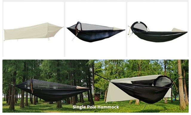 - ハンモックと蚊帳の一体型設計!虫の多い時期のアウトドアも快適に。