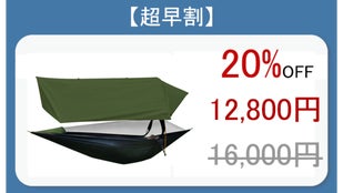 「Makuake(マクアケ)」は、実行者の想いを応援購入によって実現するアタラシイものやサービスのプラットフォームです。このページは、 プロダクトカテゴリの 「ワイドサイズで快適な寝心地を味わえるハンモック&雨風をしのげるタープセット」プロジェクト詳細ページです。