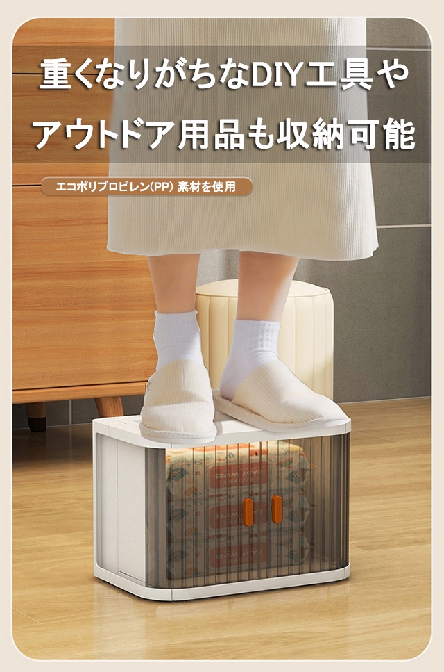 日用品や置き場所に困る常備品の収納に最適で、使わない時は、折りたたんでコンパクトに収納できる効率のいいアイテムです。