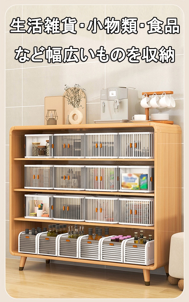 積み重ねて収納スペースを節約できる「スタッキング」可能なタイプであり、省スペースで一度にたくさんの収納ができます。