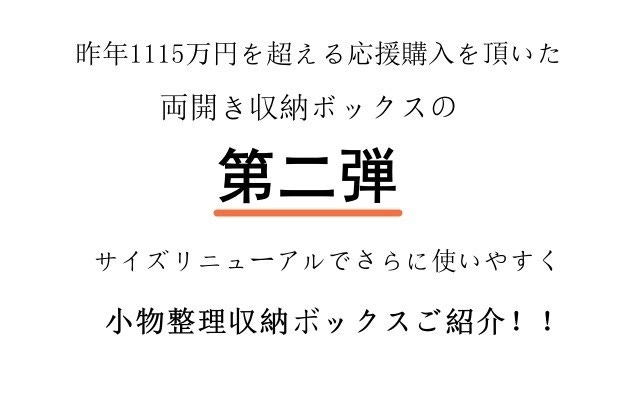 前回ご高評頂いた「89L両開き収納ボックス」は単体のリターンよりもかなりお得に設定していますので、この機会に是非応援購入していただければ幸いです。