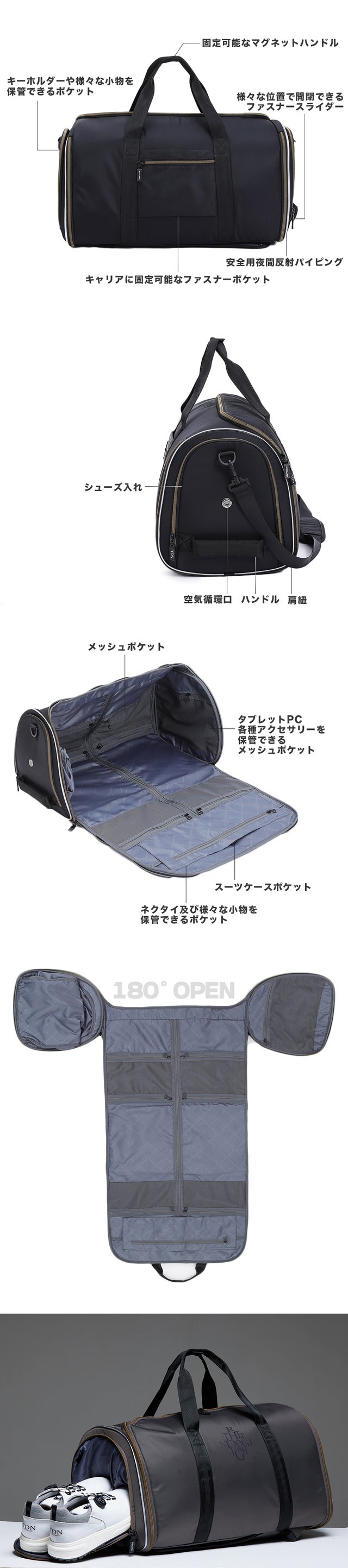 - ガーメントバッグとボストンバッグがひとつに!さらにシューズ専用収納スペースも!