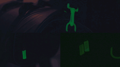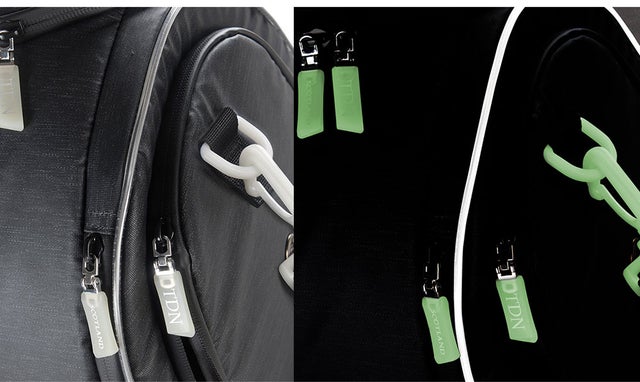 暗闇でも光る蛍光ファスナーと反射パイピングでバッグの周りを囲み、夜道でも皆さまの安全を守ります!蛍光ファスナー引手ては昼間に多くの光を集めるほど夜に長く光ります。