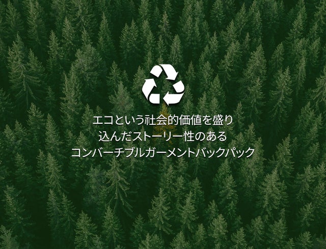 「Makuake(マクアケ)」は、実行者の想いを応援購入によって実現するアタラシイものやサービスのプラットフォームです。このページは、 プロダクトカテゴリの 「環境にやさしいリサイクリング素材で作った【コンバーチブルガーメントバックパック】」プロジェクト詳細ページです。