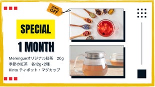 今回ご紹介させていただきました、デイリー使いにぴったりのMerengueオリジナルティーと贅沢な味わいの季節の紅茶2種類 計)3種類(11ティバッグ・22杯分)を毎月お届け♪