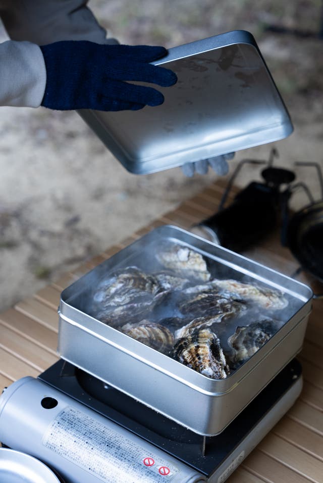 - とても簡単!牡蠣の入った専用の缶に水を入れて、カセットコンロで約10分間蒸すだけ!