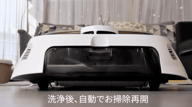 モップ洗浄はおよそ30秒で完了します。洗浄後、自動でお掃除を再開します。