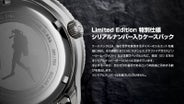 Limited Edition 特別仕様 — シリアルナンバー入りケースバック。ケースバックには、海の世界を象徴するダイバーのシルエットを繊細に刻印。その周囲には「316Lステンレス」「サファイアガラス」「ソーラームーブメント」など主要スペックとともに、限定100本を示すシリアルナンバーが一つひとつに刻まれています。