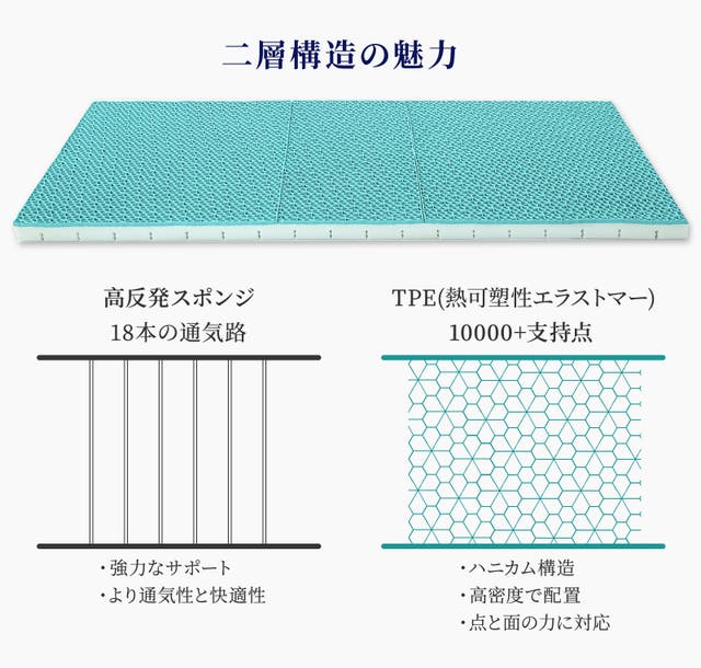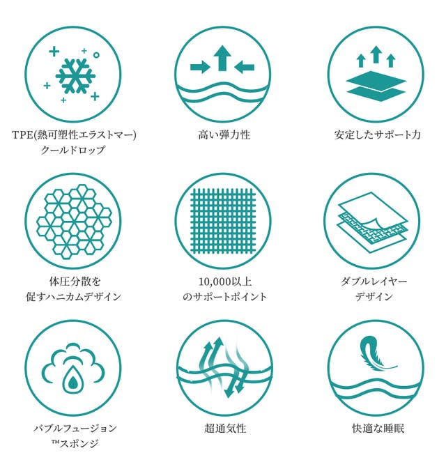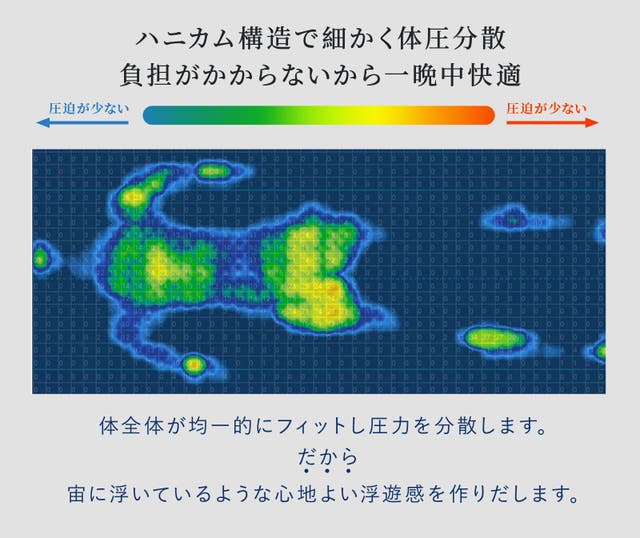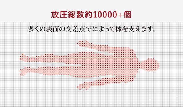 - 10,000以上の点が体全体をサポートし、均等に圧力を分散。理想的な休息状態を提供します。