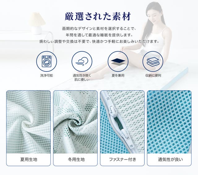 - 二層構造なので年中使用でき、 快適な睡眠へ!