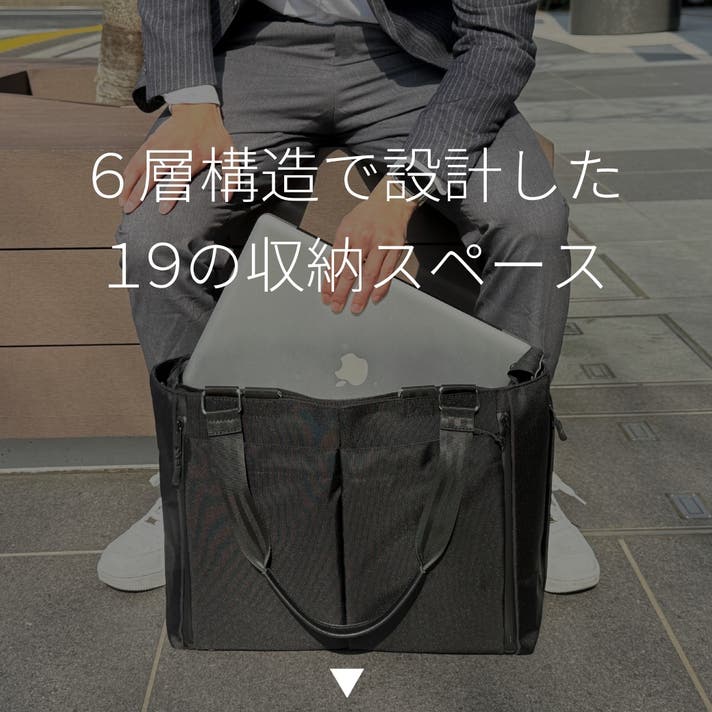 ノートPCや書類、ポーチに折りたたみ傘まで。6層構造&19ポケットで、ビジネスに旅行に、普段使いにも対応できる大容量トート。整理整頓もこれひとつで完結!