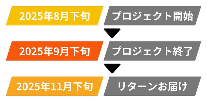 このプロジェクトはAll in型です。目標金額の達成に関わらず、プロジェクト終了日の2025年09月29日までに支払いを完了した時点で購入が成立します。