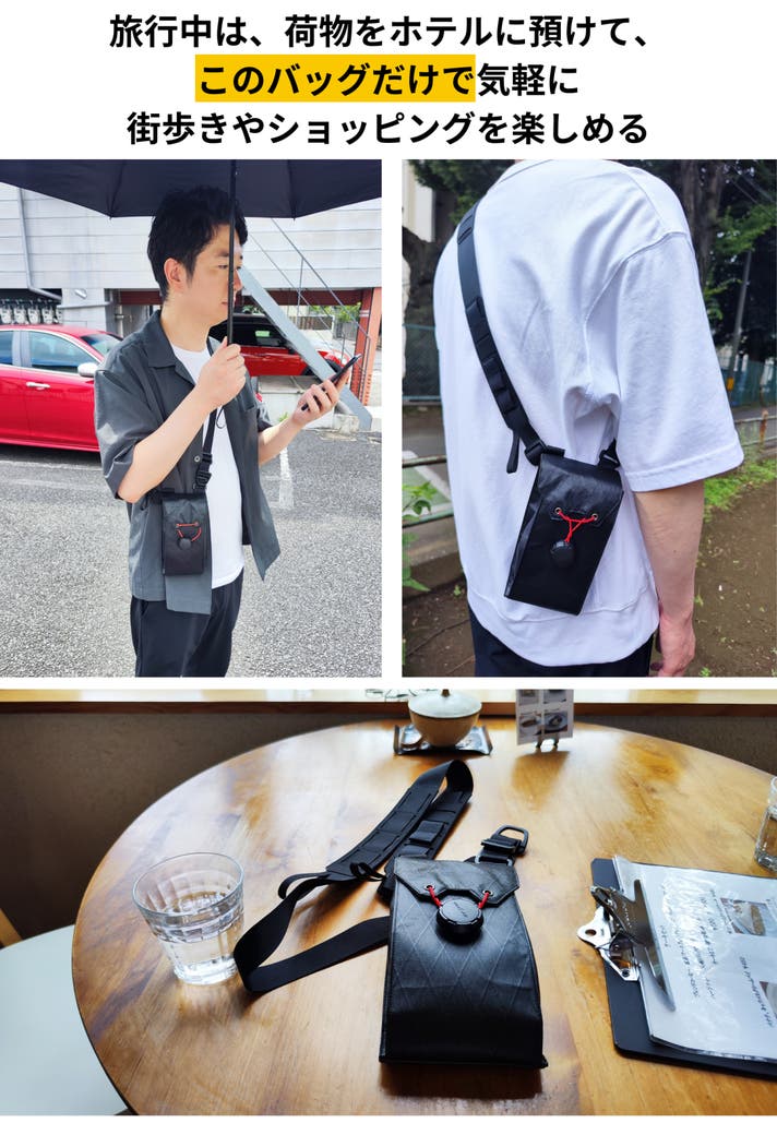そんなとき、TECWAREのような、できるだけ小さくて軽いボディバッグが重宝します。