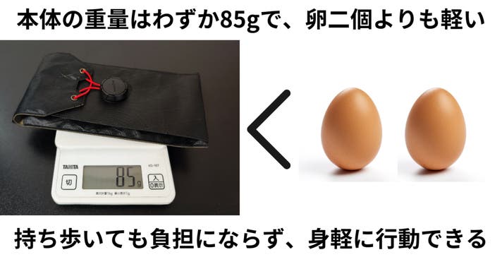 A:本体の重さは約85gで、卵2個分よりも軽量です。