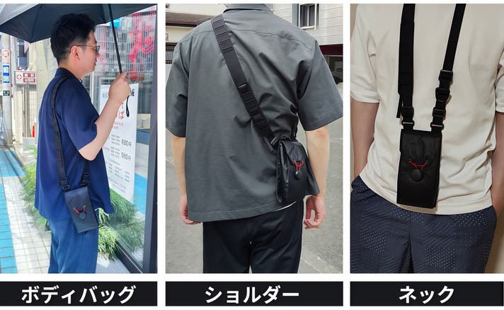 肩掛けや斜め掛け、ネック掛けとしてもスムーズにスタイルチェンジが可能で、日々の使用シーンや服装に柔軟にフィットします。