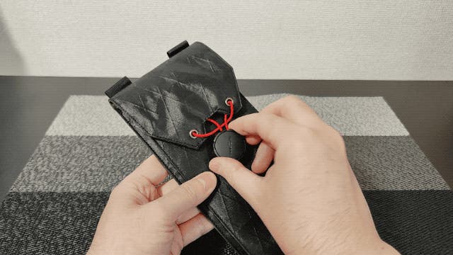 A:メイン素材には高耐久・防水性に優れたX-PACを採用しています。これにより、軽量なのに丈夫で、雨や汚れにも強い仕様です。