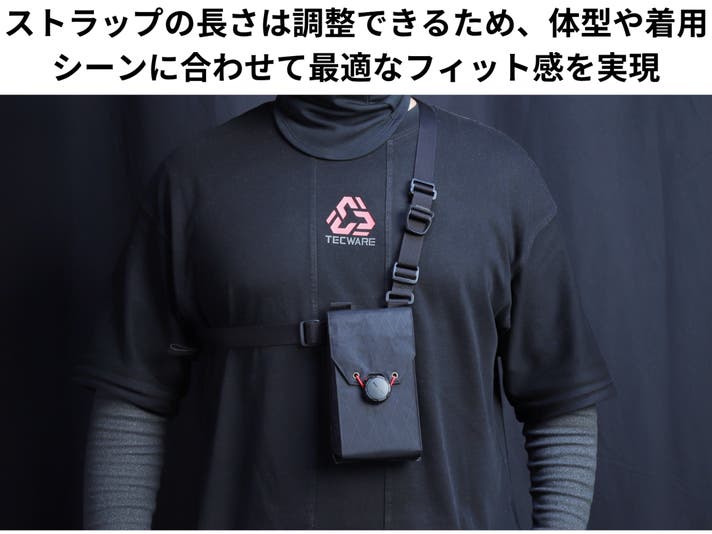 「TECWARE」のストラップは、瞬時に長さを調整できるため、肩掛けや斜め掛け、ウエストバッグとしても自在にスタイルチェンジが可能です。シーンや服装に合わせて、快適に使い分けられます。
