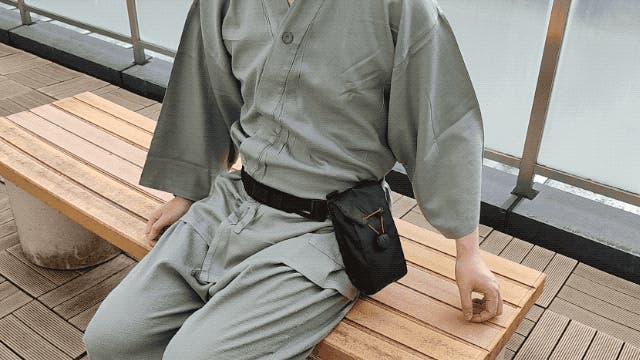 一方で、椅子に座って食事をするときや車のシートベルトを装着するときには、ボディバッグ「TECWARE」をウエストバッグとして使うことで、より快適で動きを妨げないスタイルに変えることができます。