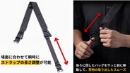 - ストラップの長さが瞬時に調整でき、体にぴったりフィット。斜めがけでも肩掛けでも快適