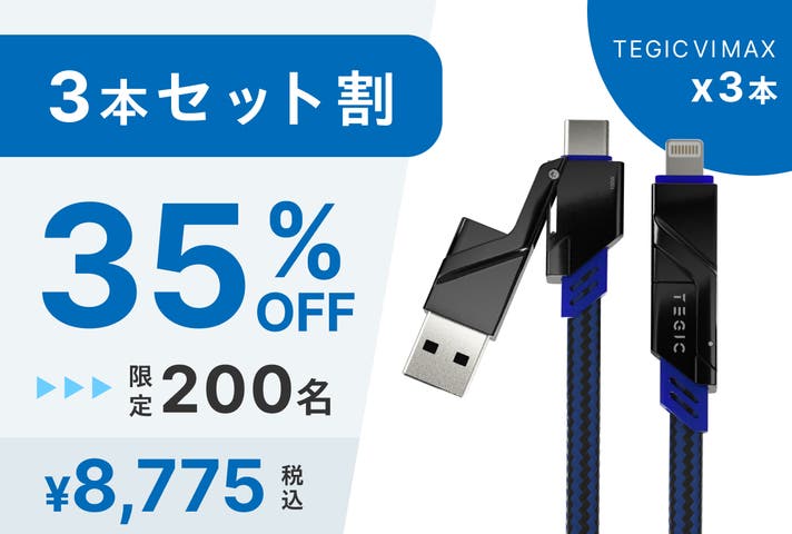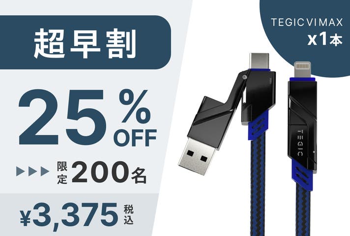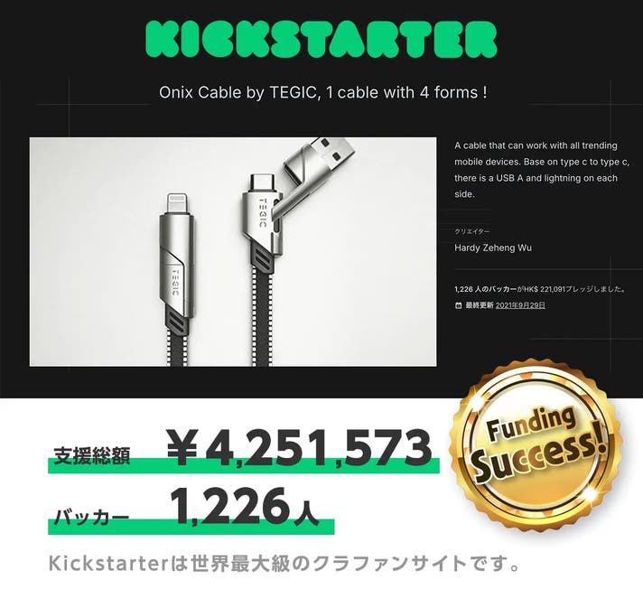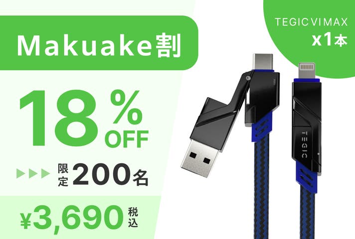 世界最大級のクラウドファンディング「KICKSTARTER」で、『1226人・HK$221,091』の注目を集めたTEGIC VI MAXの4in1充電ケーブルがさらに進化し、日本に上陸!