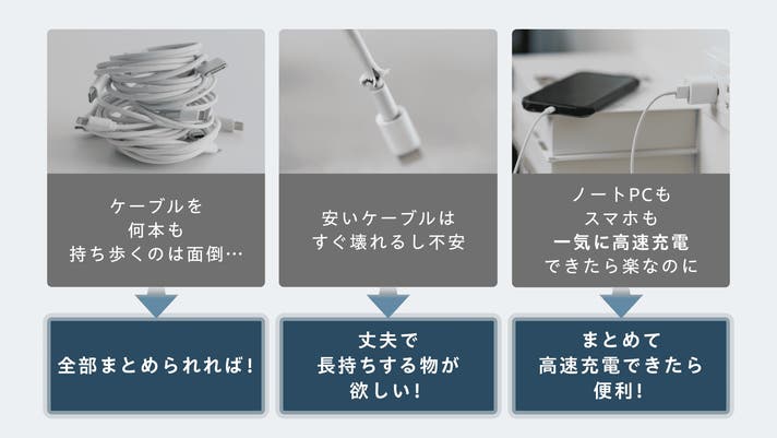 私たち自身、スマホやノートPC、ヘッドホンなど、機器ごとに異なる充電ケーブルに悩まされてきました。