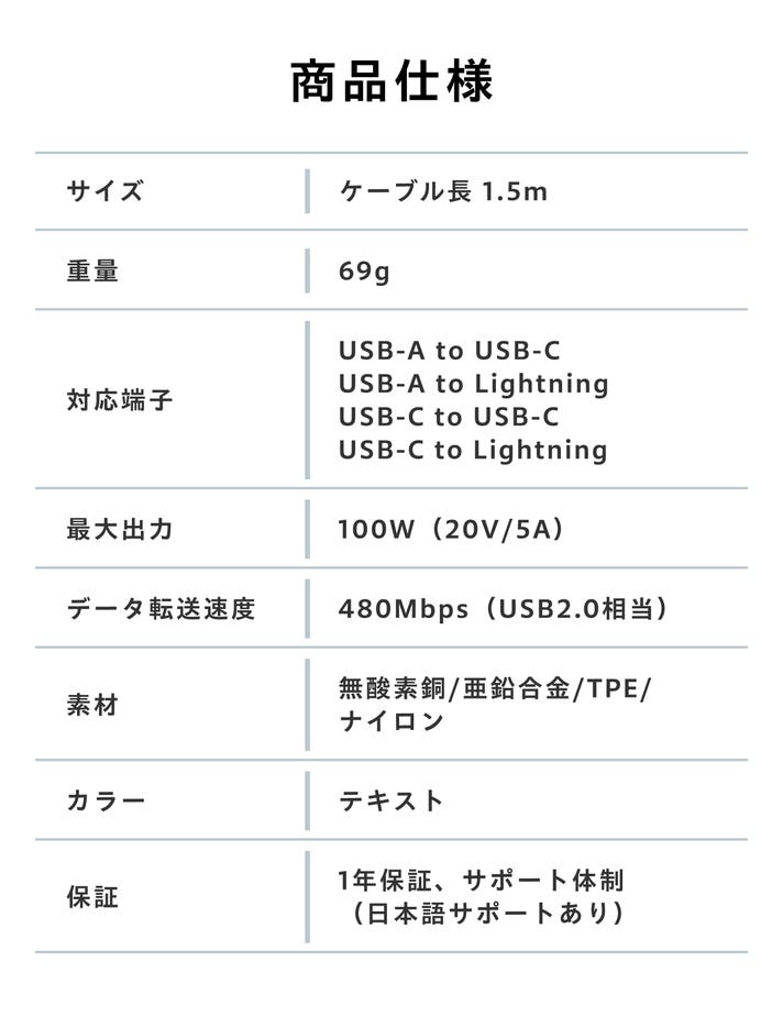 長期使用でも買い替え不要の“一生モノ”ケーブル。