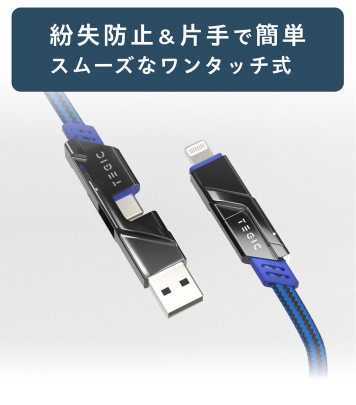 - 【4in1ケーブル】ケーブル迷子からの解放!スマホもPCもこれ1本だけでOK!